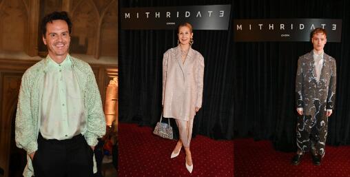 大秀当日,星光熠熠,先锋影视剧集《都是陌生人》、《伦敦生活》、《神探夏洛克》主演Andrew Scott,《绯闻女孩》主演Kelly Rutherford,大热影片《叛逆之声》,《女气》,《黑白魔女库伊拉》主演John McCrea等知名演员、明星、时尚达人身着MITHRIDATE时装亮相,共赏先锋秀场。将身体认知与世界感知融于瑰丽雕琢,于中世纪的氛围美学中,诠释毫不费力的优雅,不动声色的适意奢华。
