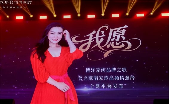 2025年5月8日20:08,博洋家纺与著名歌唱家谭晶联袂打造的品牌之歌《我愿》在全网正式发布。这首由谭晶倾情演绎的歌曲,以其天籁般的嗓音与深情诠释,将博洋家纺品牌对“幸福文化”的追求凝练为动人旋律,为听众编织了一场温暖而充满诗意的听觉梦境。